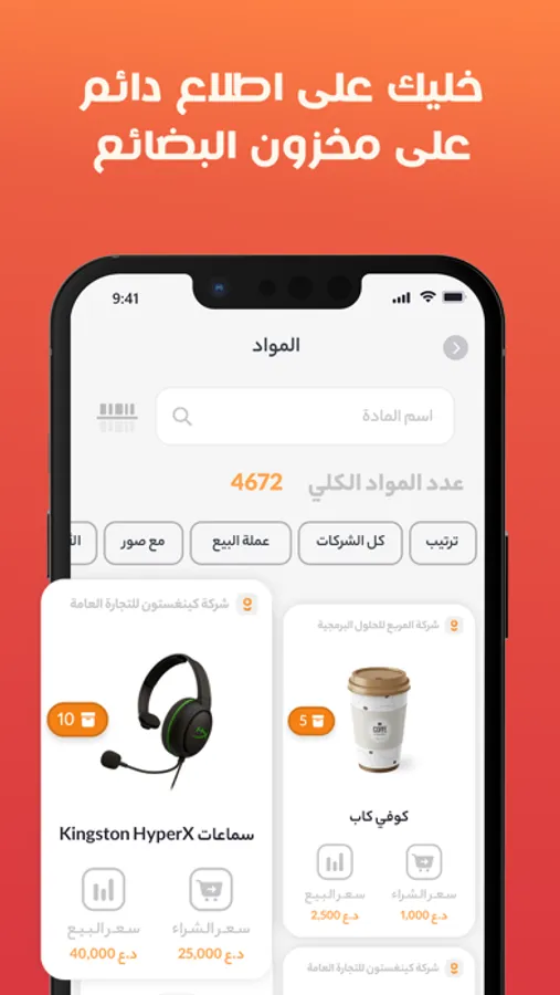 ٣. تفاصيل المواد الموجودة في مخزنك/مخازنك مع أسعار الشراء والبيع والكميات المتوفرة