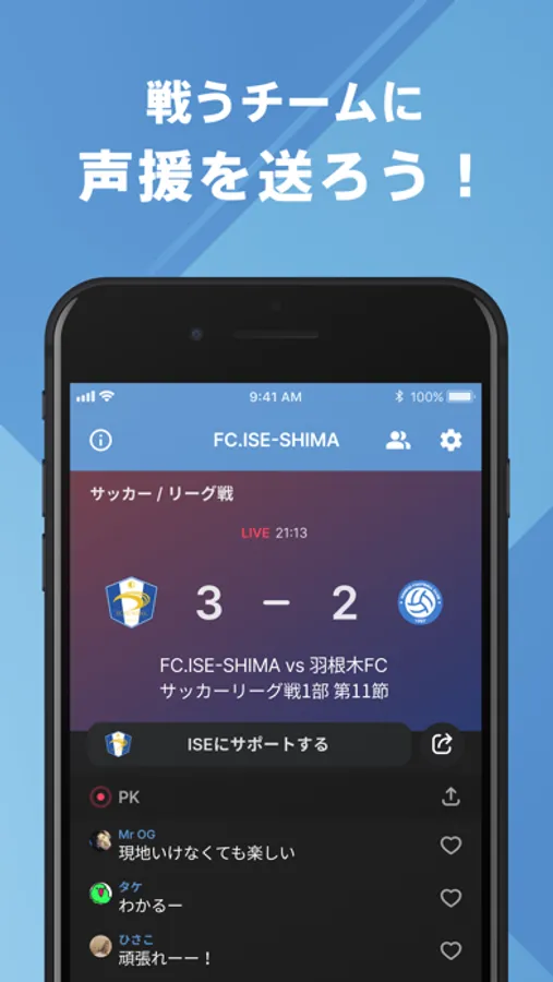 アプリを通じて、チームとの距離がぐっと近くなる。仲間が増える。チームをもっと好きになる!