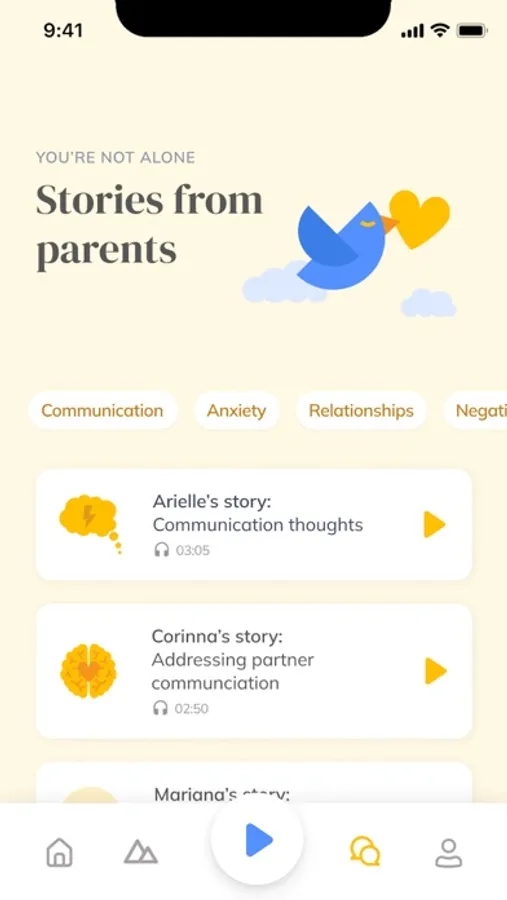 COMMON CHALLENGE SESSIONS: 120+ mental health expert-created sessions—from 2-10 minutes—focused on navigating the most common parenting hiccups and triggers that affect our emotional and mental health such as: