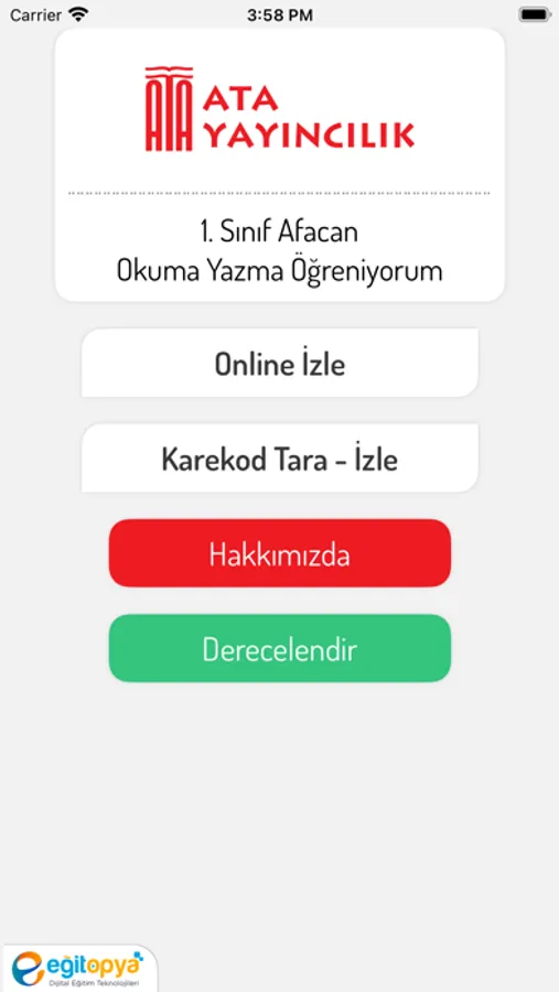 Ata Yayıncılık 1.Sınıf Afacan Okuma Yazma Seti içerisindeki uygulamaları karekod ile kolayca kullanabileceğiniz mobil uygulamayı indirip ücretsiz kullanabilirsiniz.