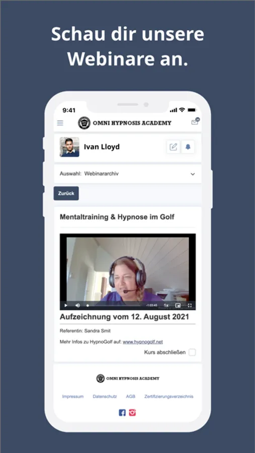 Möchtest du dir eines unserer Webinare aus dem Archiv ansehen? Oder am Online-Hypnosekongress mit dabei sein? Alles ist verfügbar auf deiner OMNI Hypnosis App.