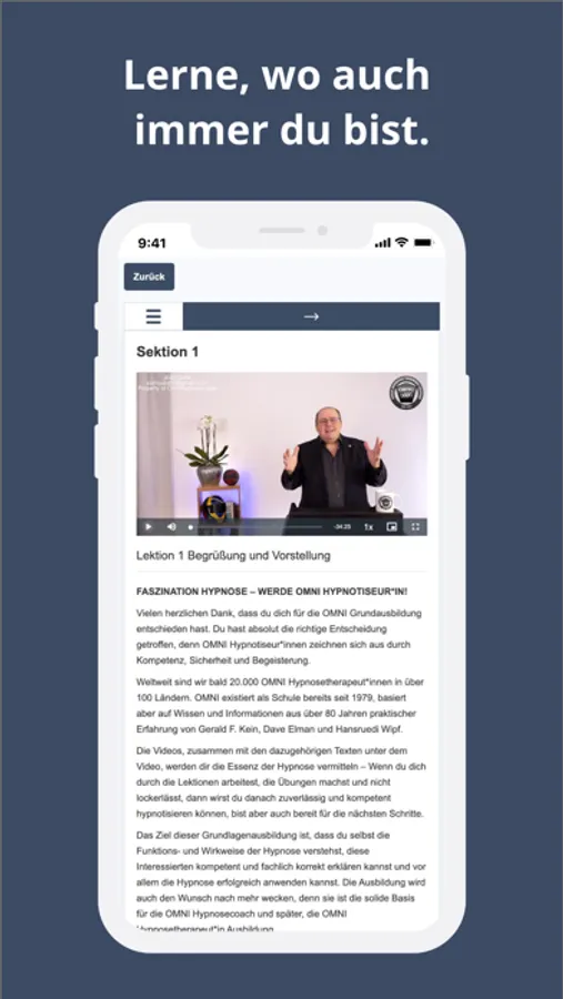 Die OMNI Hypnosis App ermöglicht dir den Zugang zu all deinen Inhalten und Ausbildungen, während du unterwegs bist. Beteilige dich mit einem Klick an den Diskussionen im Forum, schau dir unsere Webinare und Therapievideos an oder lerne weiter egal wo du gerade bist.