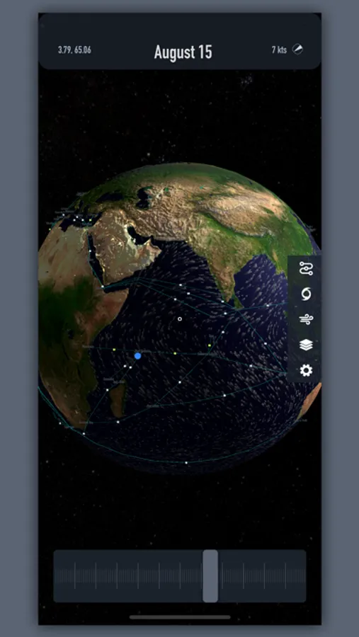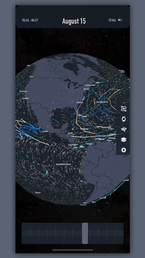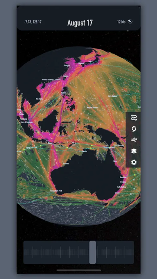 - Layers allow you to see Sattelite Imagery, Bathymetry, AIS Density, Time Zones, Lightning Strikes, and Population Density maps.