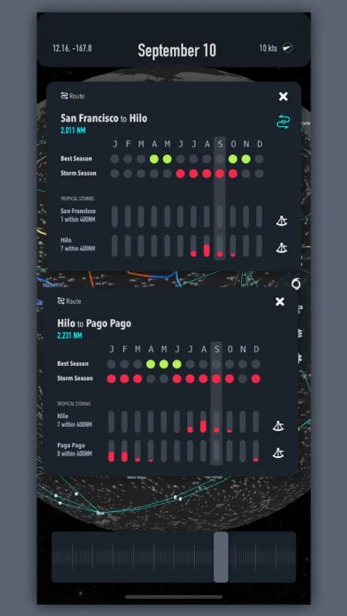 - Routes show when it's storm season and when it is the best time to go.