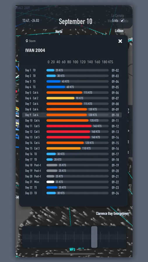 - View tracks and wind speed of tropical storms that occurred between 2000-2020.