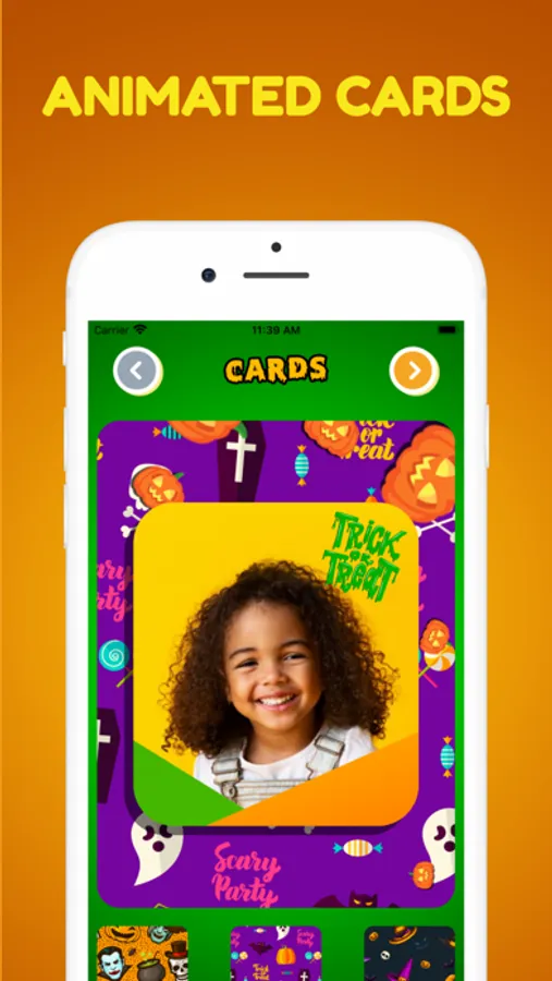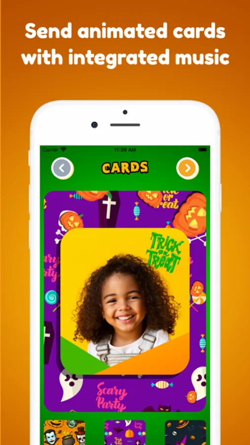 - Animated cards with music to send friends your best Halloween souvenir photos