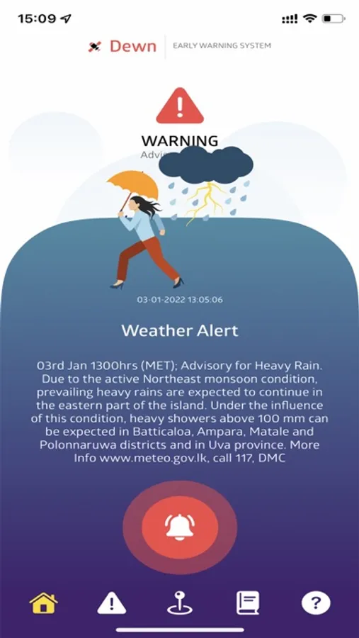 - Alerts: receive alerts directly released by DMC of Sri Lanka based on your location and threat level (i.e. if an alert is national everyone will receive the message as opposed to a regional alert)