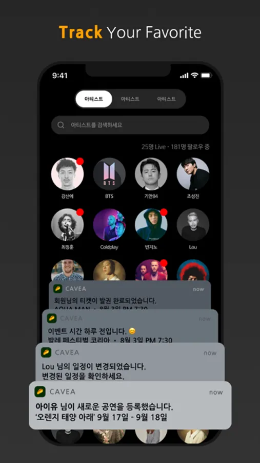 Enjoy events you usually enjoy or events in new genres recommended by CAVEA. Communicate with people who like the same artists and make new friends.