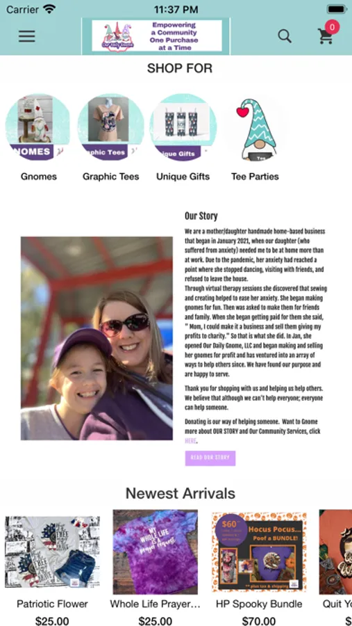 Our Daily Gnome app allows you to stay connected with what is happening in our store and our community as well as allows you to shop quickly and effectively from our online store, live sales and events.