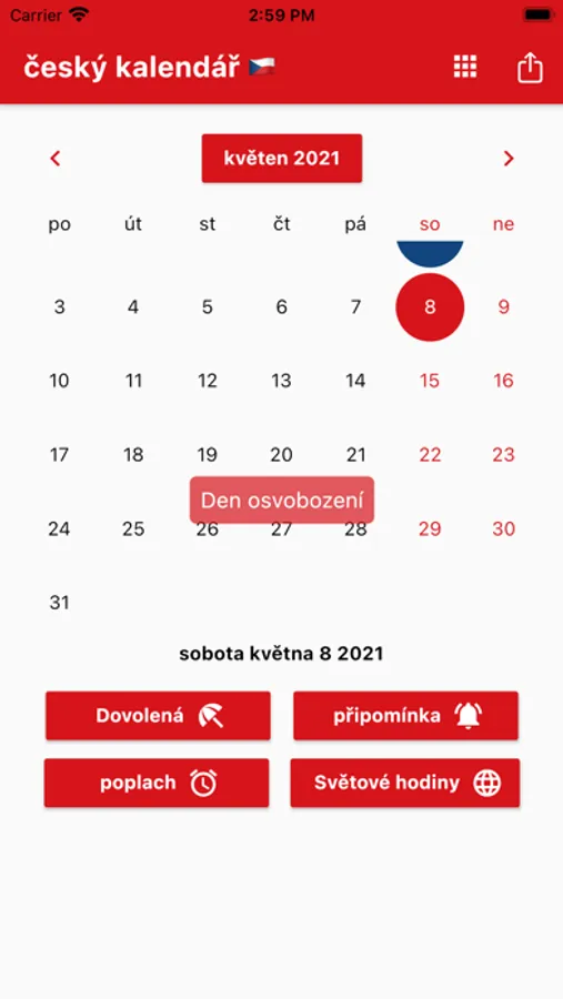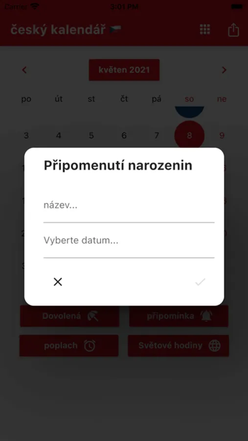Můžete nastavit připomenutí a přijímat oznámení ve správný čas. Nezapomeňte si připomenout České svátky.