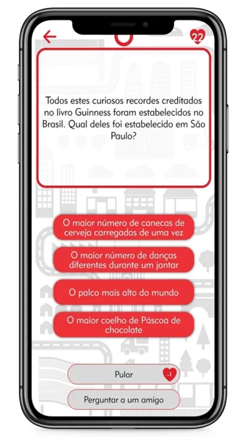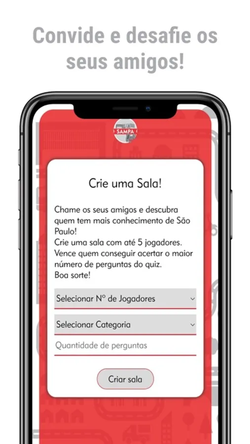 SampaQuiz é um inédito jogo a respeito de São Paulo. Um aplicativo com perguntas e respostas relacionadas a diversos temas da cidade. São 350 perguntas, divididas em 10 categorias, que vão desafiar seus conhecimentos sobre história, ruas, lendas, bairros, mitos, curiosidades, personagens, anedotas, lugares e muito mais!