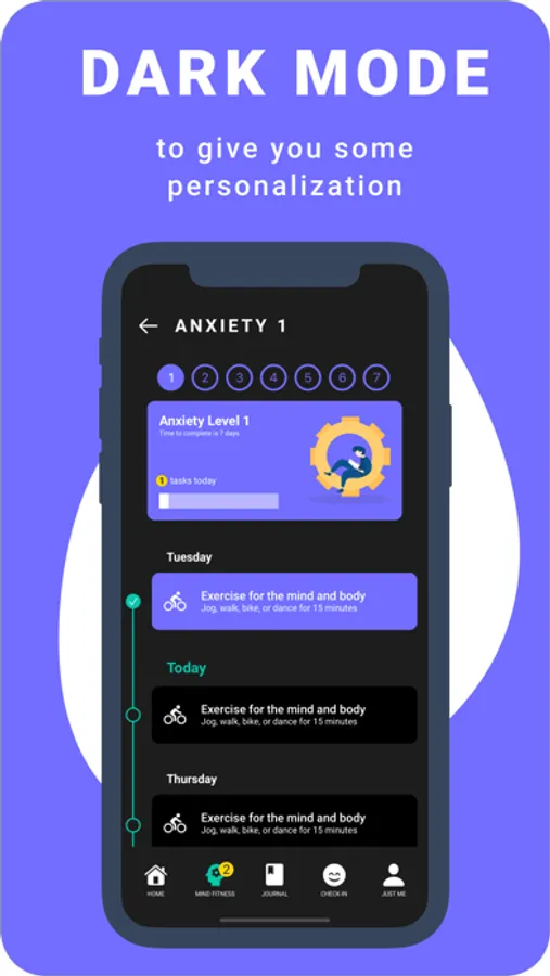 Our daily and weekly check-ins create a path for improvement by tracking where you are, helping you set goals, and guiding you toward progress week by week. With coping tools in your pocket, managing symptoms and tracking your progress becomes a whole lot easier. Day or night, when you need a little support reaching your mental health goals, you can find that support right in the app with our coaching resources.