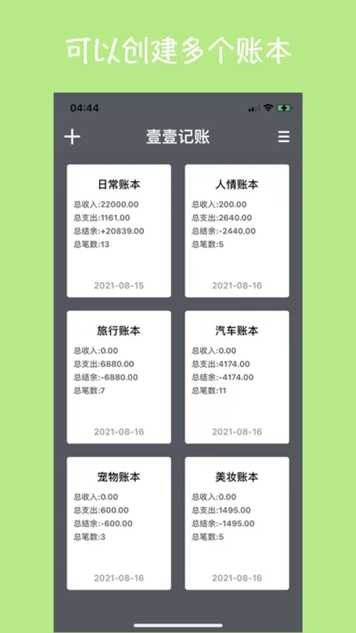 1 可以添加多个不同类型的账本。