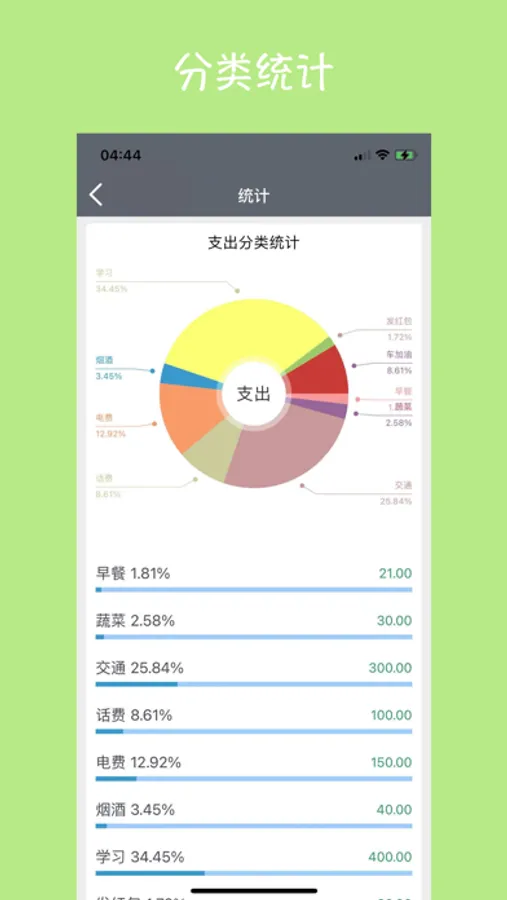 4 每个账本都有自己统计分析。