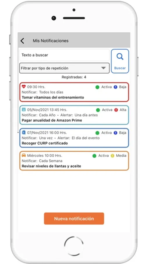 Con eNotify podrás crear eventos para recibir notificaciones por hora, diarias, semanales o por lapsos de tiempo.