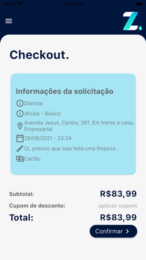 - O cliente faz um pedido selecionando os detalhes sobre o serviço que está buscando;