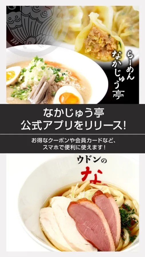 らーめんや なかじゅう亭・ウドンのな 公式アプリをリリースしました。