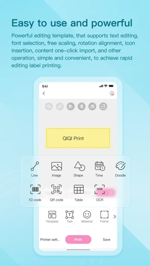 【Various Elements】Including text, images, icons, graffiti, borders, barcodes, QR codes, time, shapes, lines, OCR, etc., making the editing process more free;