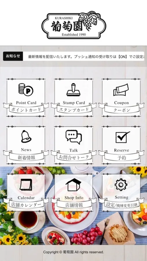・【葡萄園】からの最新情報をプッシュ通知で受け取れます。