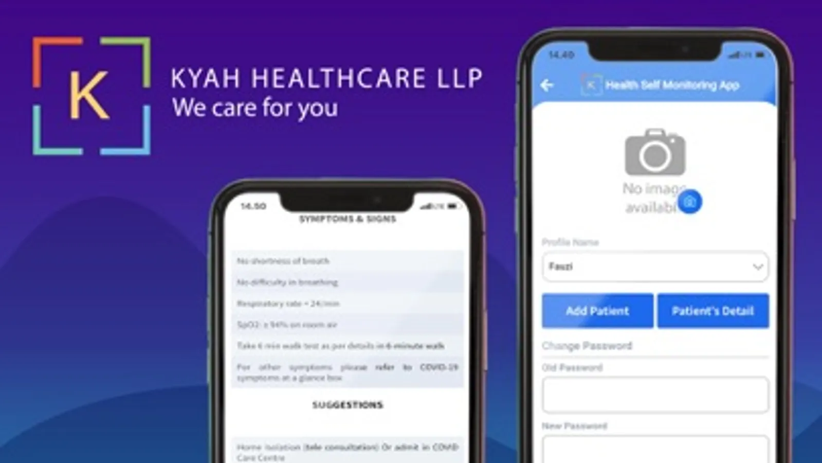 Kyah Health Self Monitoring App provides education around common signs of illness and lets users track their own symptoms and vital signs directly in the app. As a patient periodically updates their symptoms, the app can recognize trends and offer appropriate guidance. For the mildly symptomatic, the app provides support during self-isolation. If symptoms worsen, the patient is advised to see a medical practitioner.