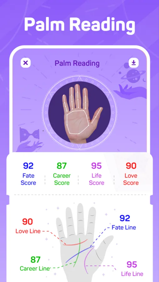 - Palm Reading: Know your future by interpreting the lines of your hand in real time. Thanks to KnowMe, you will know what each line means and what the future holds for you.