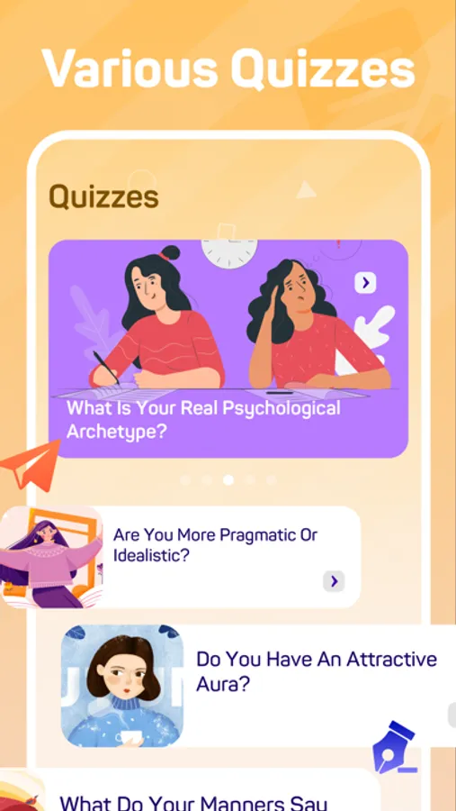 - Various Quizzes: We provide such a wide range of tests including life, love, career, family, etc. A variety of tests allow you to learn more about yourself from different angles.