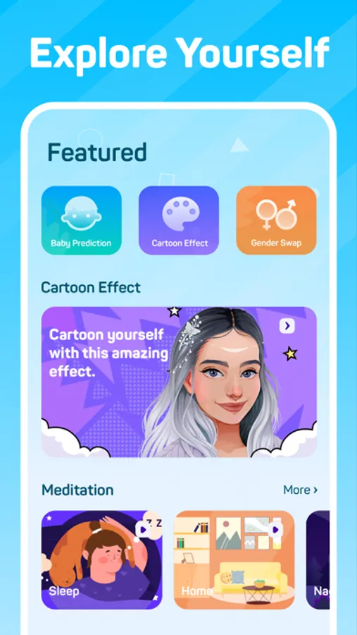 There are several funny features like baby prediction, time machine, cosplay effect, cartoon effect, gender swap, etc. You can easily have a lot of fun by experiencing these through KnowMe.