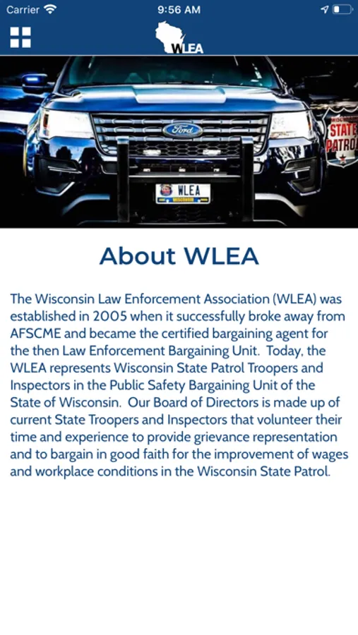 This app is intended to be a communication resource for the Wisconsin Law Enforcement Association (WLEA), its members and the citizens they serve. To that end, the app includes: