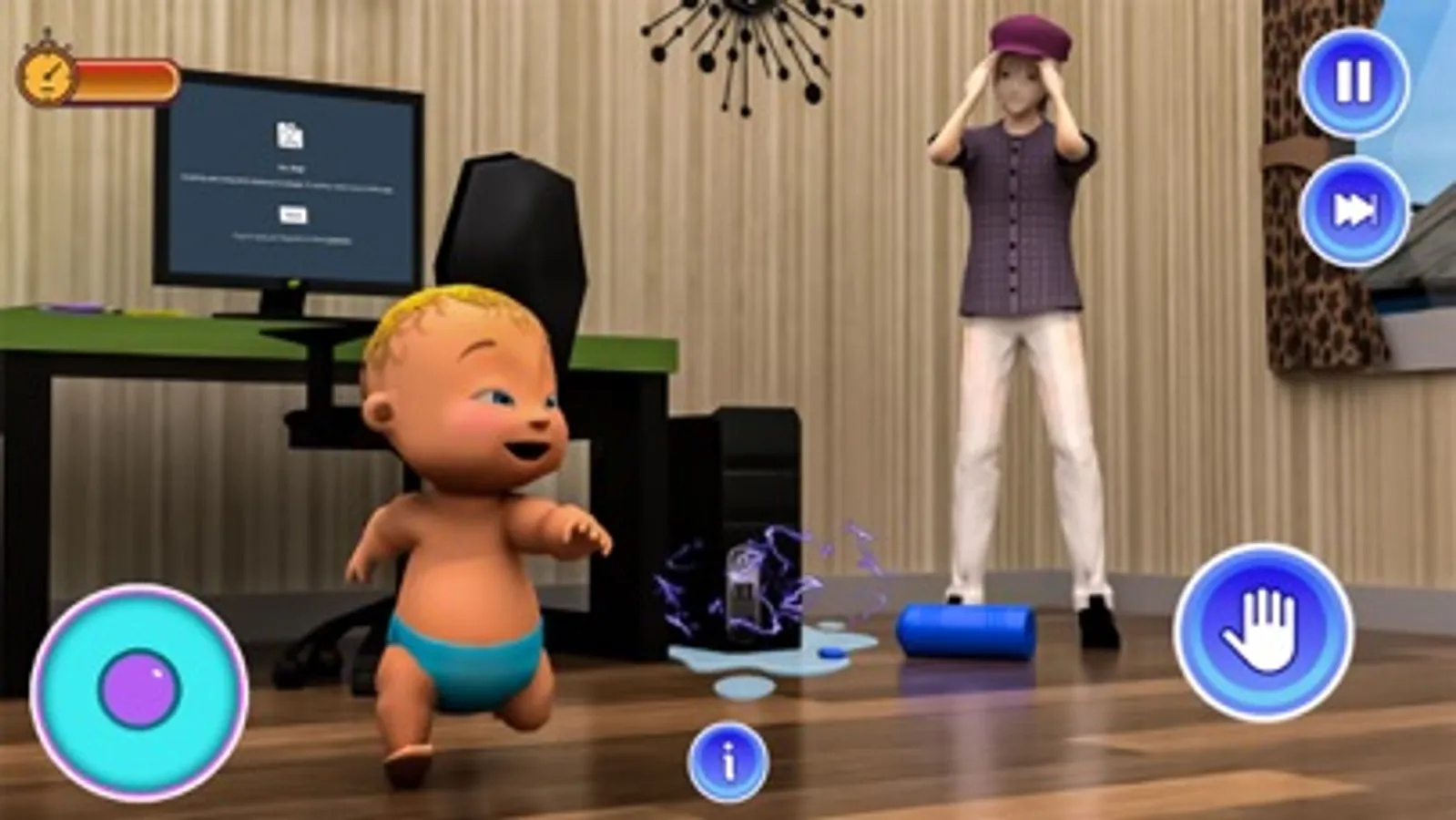 Are you crazy about playing baby simulation games, we are here with some new twins' baby care and newborn baby simulation games. Babies are a lot of fun, we are here with a game of virtual happy family. Your elder brother and sister are advised to take care of you and be a babysitter for today. But here you are allowed to play a lot of pranks with the babysitter who is here to take care of babies. But the baby in this game is very intelligent and naughty, he knows very well how to pull pranks and tease his family all the time in this gameplay. Experience a fun mother daycare and 3D babysitter.