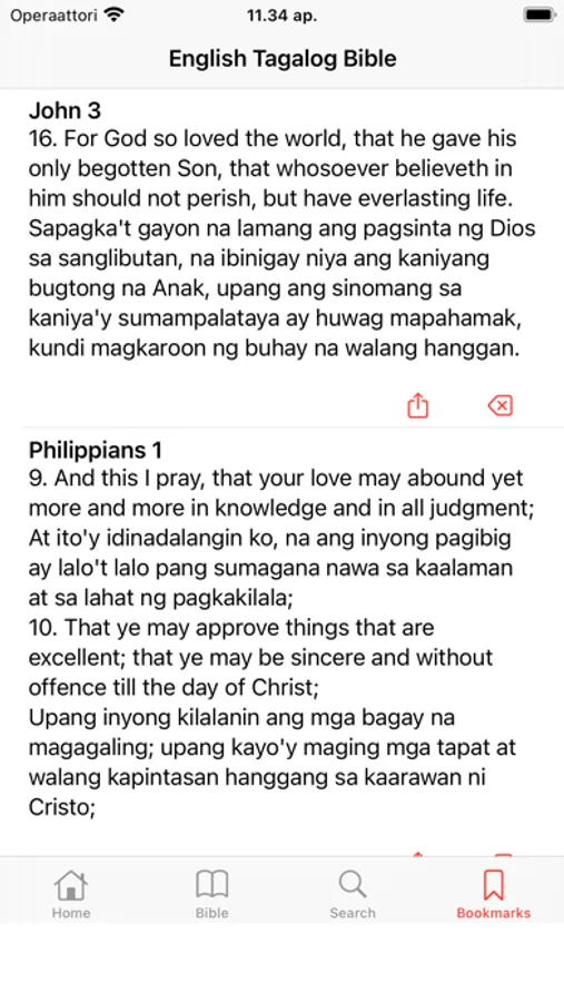 An English with Tagalog parallel version Holy Bible that is completely offline. This is the only Bible app you'll need when attending a church service or personal devotion. You can highlight, copy, bookmark or share verse(s).