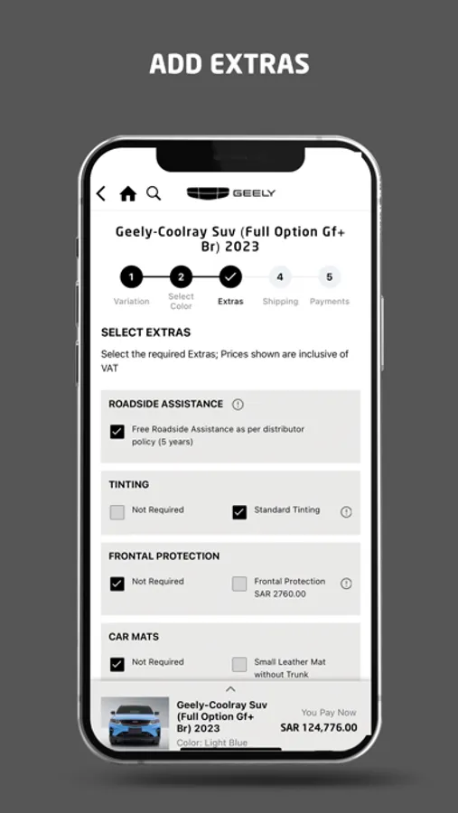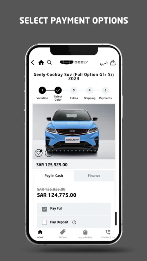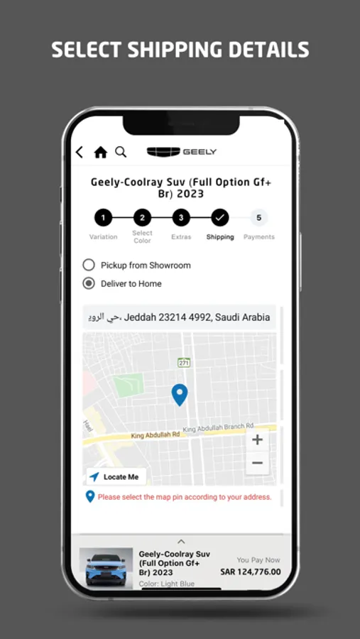 من خلال عوامل تصفية البحث المتقدم، يمكنك الانتقال إلى طراز السيارة الذي تريده بناءً على متطلباتك وتفضيلاتك المحددة بكل سهولة. بمجرد تحديد طراز السيارة، يمكنك اختيار الدفع لمرة واحدة من خلال الشراء الآن، أو تخصيص إجمالي السعر في خطط تقسيط سهلة، أو الحصول على حيازة سريعة من خلال خيار تمويل السيارة من خلال البنوك الرائدة في المملكة العربية السعودية. نساعدك في كل خطوة على الطريق من خلال تقديم المساعدة المهنية وتتبع الطلبات والإشعارات والمزايا الإضافية والخصومات الحصرية على العروض الخاصة. سيتم تسجيل سيارتك وتسليمها إلى وجهتك المفضلة.