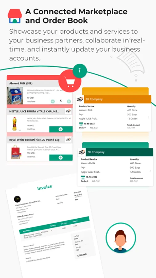 Ciwac introduces the world’s first marketplace that is directly connected with business accounts. It acts as an automated Order Book, that brings transparency to their orders. A Ciwac business can use this section to showcase their products and services to their business partners in real-time. After an order, both businesses can collaborate in real-time and generate contract-specific documents. Businesses can also automatically update their inventory levels.