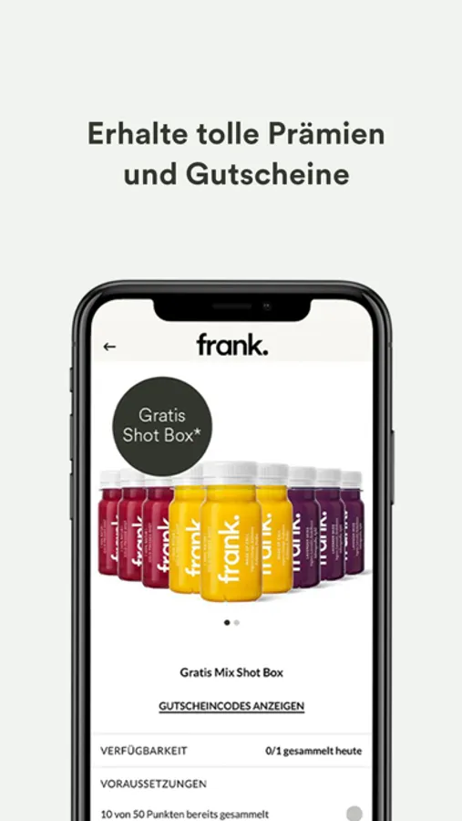 Die frank. App ist da! Sie ist Dein idealer Begleiter für die Saftkur und auch sonst im Alltag. Zusätzlich kannst Du ganz einfach durch unterschiedliche Aktivitäten frank. Coins sammeln und gegen tolle Prämien einlösen!