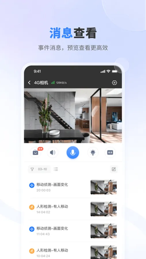 2、安全存储:支持云存储服务,记录图像及声音,包括事件录像及连续录像,重要信息不遗漏