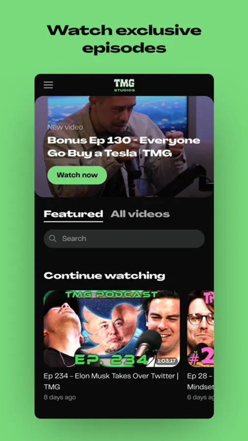 The TMG Studios app gives you full access to everything TMG Studios. Stay up to date with the latest TMG Studios Videos, Comics, Audio, and all other TMG Studios content. Join a membership tier to get exclusive access to bonus content, ad free episodes, exclusive merch drops, and a community that loves TMG Studios as much as you do.