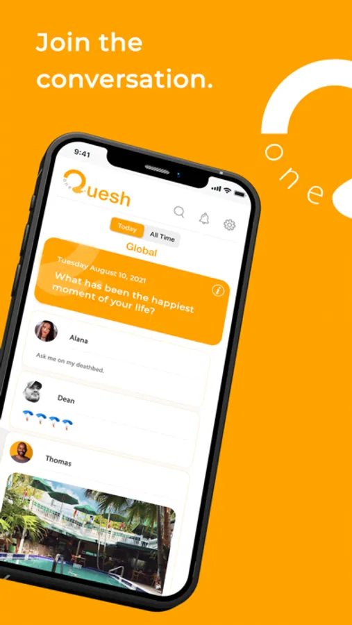 No Likes. No Comments. Just Social. We believe the way to spark conversation is by asking users one simple question each day. OneQuesh is here to remind social media users to embrace the little moments in life, the moments that are more satisfying than receiving 100 likes or getting a new smartphone.