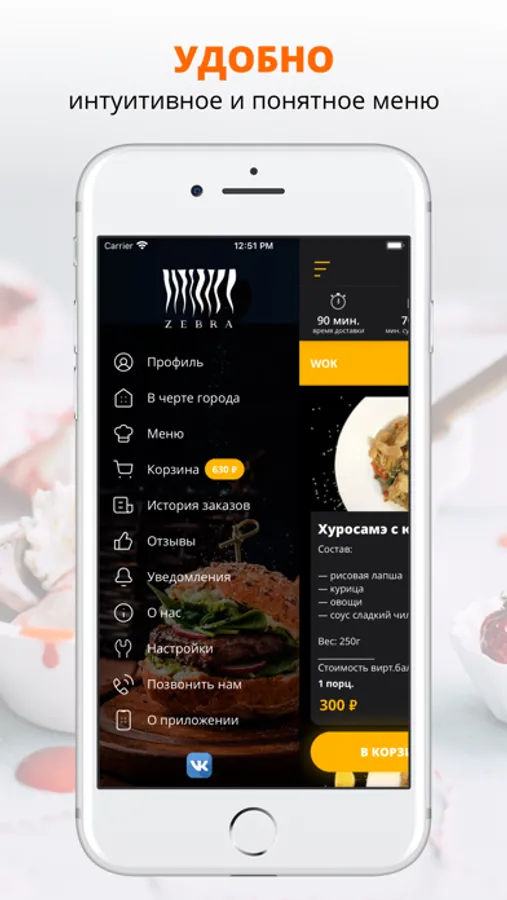 Приложение Зебра — это удобный способ заказа еды домой или в офис! Мы готовим наши блюда из качественных свежих ингредиентов и доставляем еду по Нижневартовску быстро и бережно. Выбирайте и заказывайте вкусную еду с доставкой всего в несколько кликов!