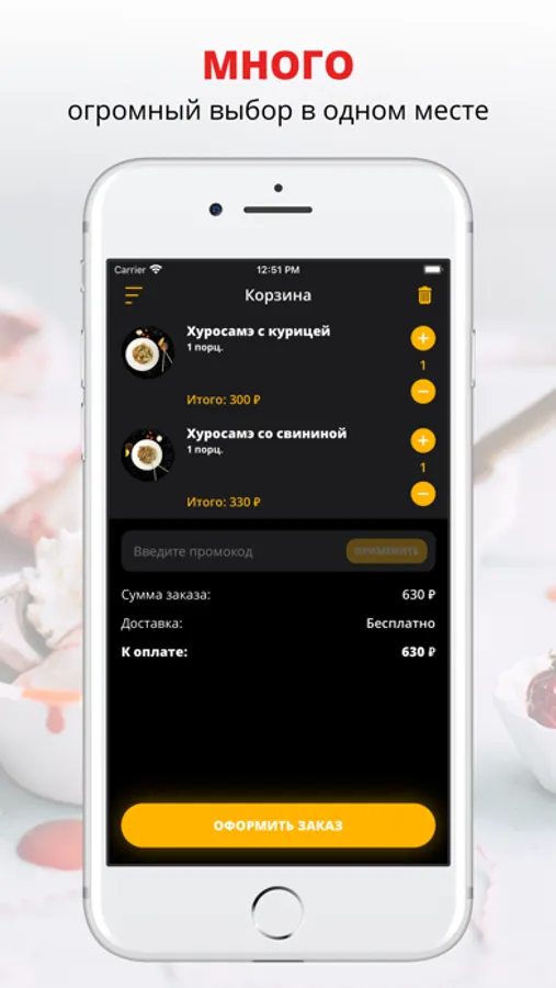 Скачивайте наше приложение, оформляйте заказ и наслаждайтесь любимой едой, где бы Вы ни были! Приятного аппетита!