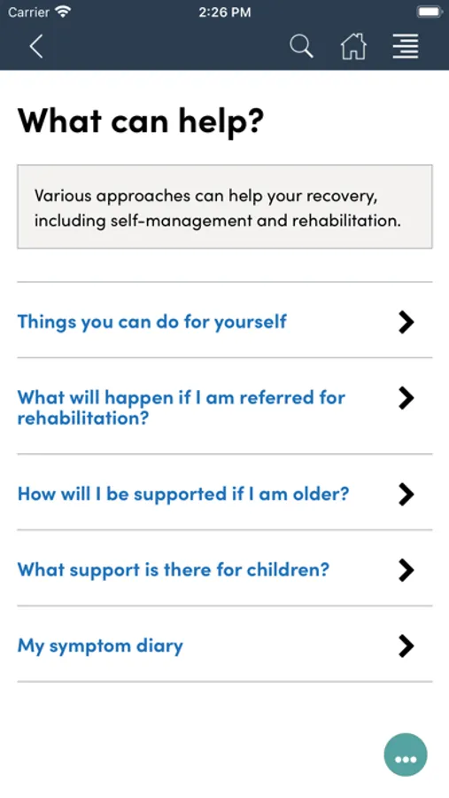 This web and mobile app goes one step further by presenting the content in a digital structure that makes it easy for patients to quickly get to the information they need. It also incorporates tools and features to support self-management.