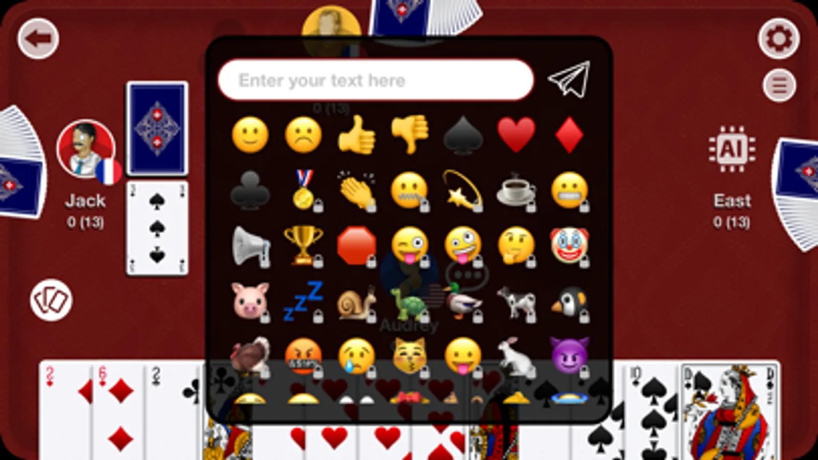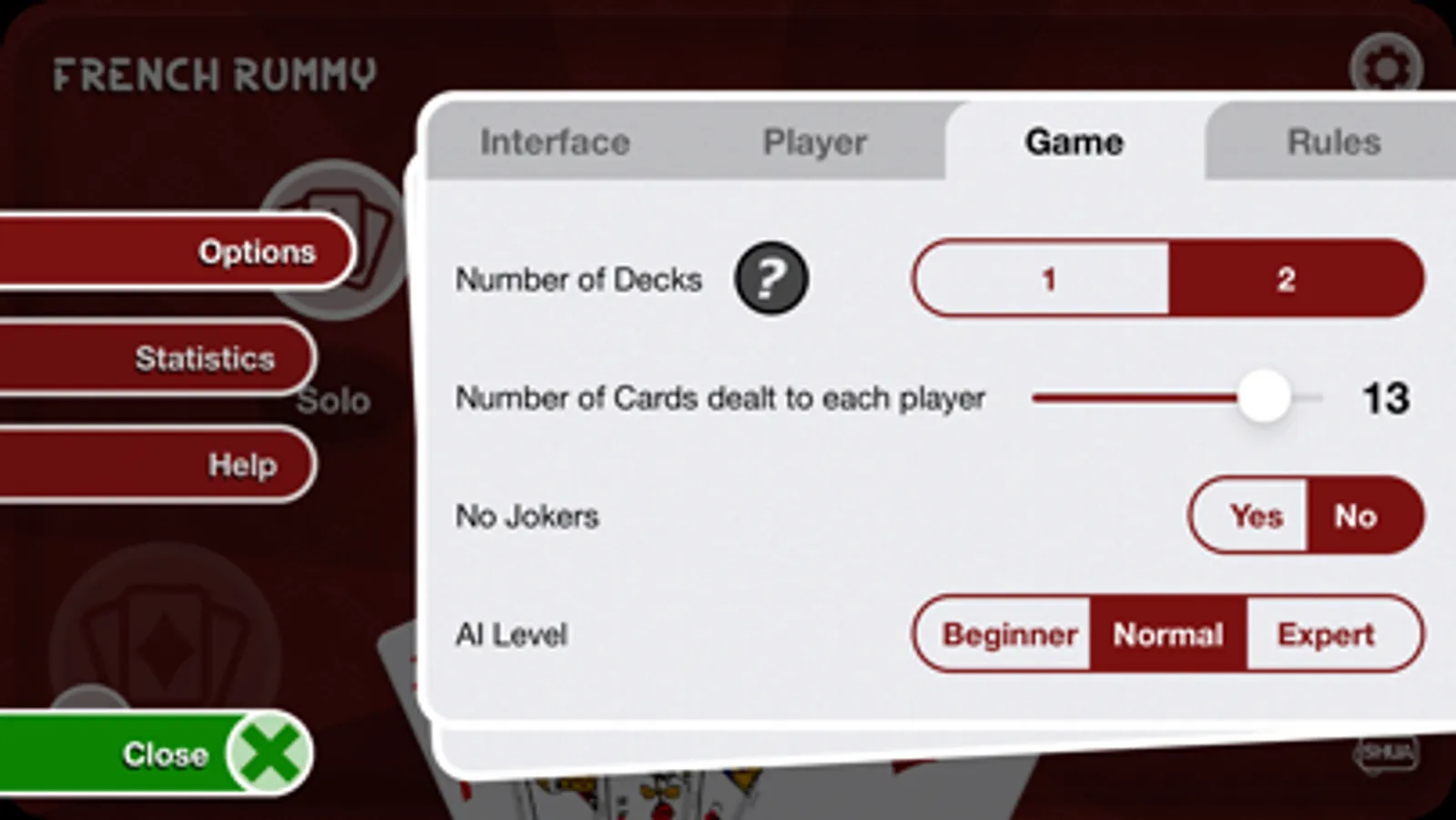- many game options (play with or without Jokers, number of players, number of decks, AI level, etc…)