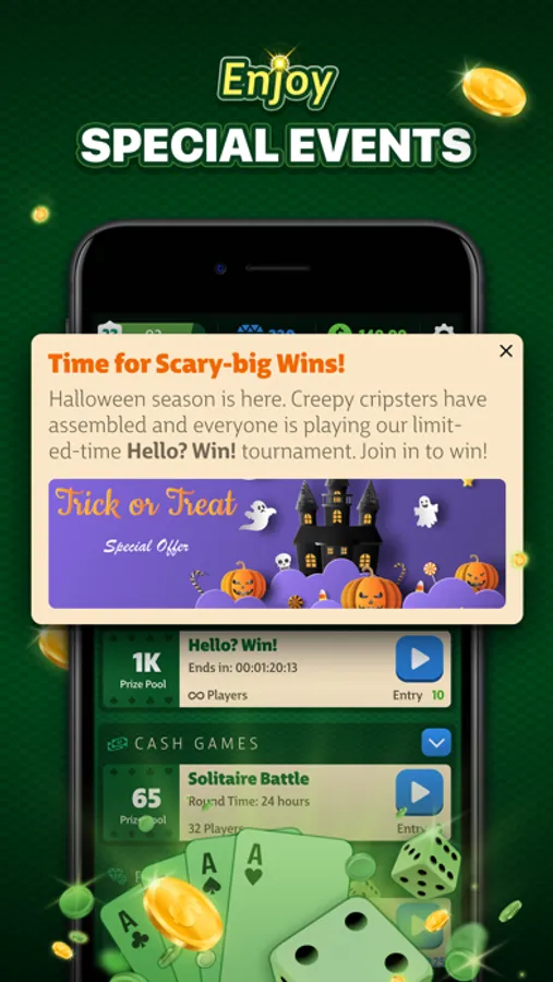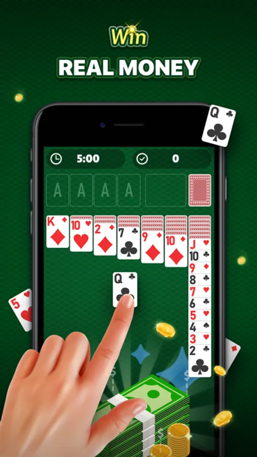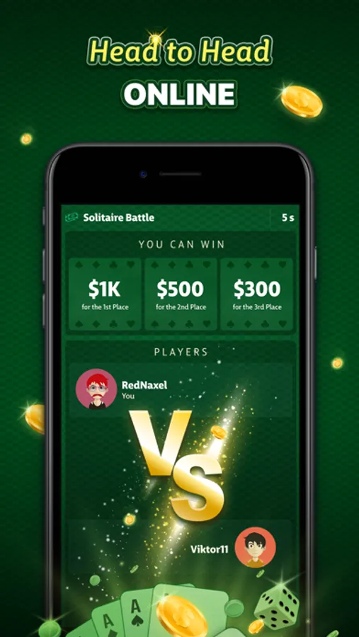 To play Solitaire Duel just launch the game and choose one of the challenges. They have different entry fees and amount of players participating in it. All of the players within a match receive the same set of cards. Solve the classic Klondike Solitaire game faster than your opponents and win the match prize!