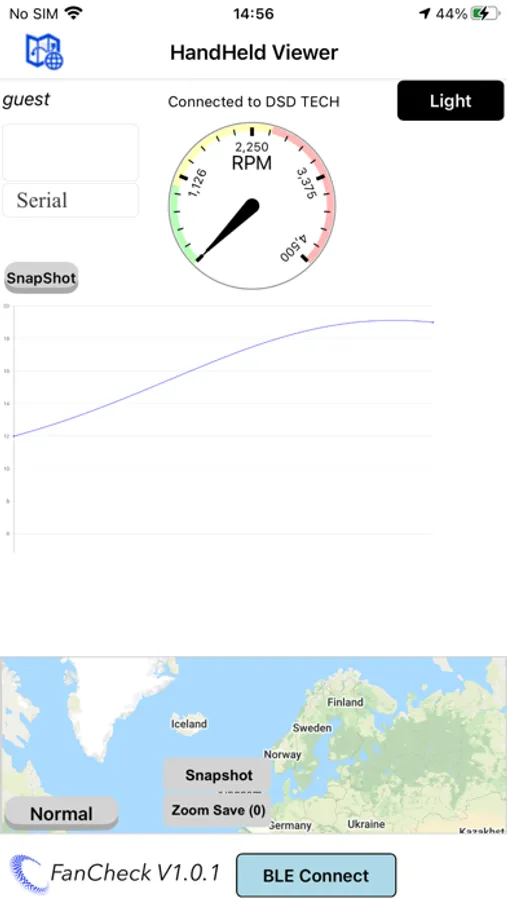 This APP connects directly to the Fan Speed monitoring unit via BlueTooth to show and chart the fan speed.