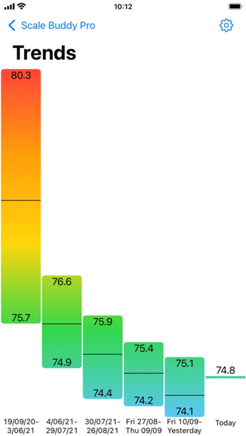 - Immediately compare today's weight vs. comprehensive trends chart.
