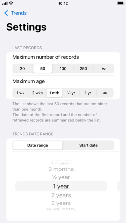 Summary trends graph (iPhone: adjustable date range, Apple Watch: last 8 days)