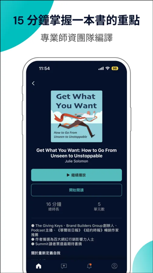 We are your time-saving assistant! Whether you’re commuting, putting on makeup, or even before bed, you can listen to good books recommended by media celebrities such as The New York Times, Time Magazine, Bill Gates, etc., and grasp the essence of good books in just 15 minutes. Not only can you cultivate cross-disciplinary interests, but you can also show your professionalism in front of customers and supervisors. What’s even better is that every month you can vote for new books that interest you and learn and grow with other high-level talents.