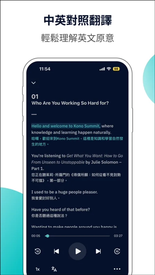 Kono Summit provides audio book summaries in both Chinese and English, specially designed for busy people like you. Every week, we select best-selling books from Europe and America, and have foreign professional teachers read and write summaries to help you improve your English listening and reading skills, as well as your language sense, so that you can quickly grasp the essence of each book.
