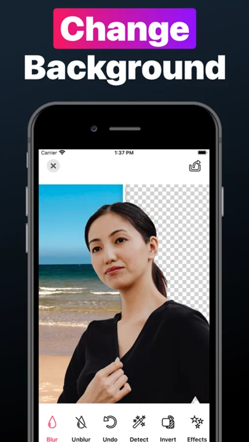 You can use the app to edit, replace or remove the background of photos, apply amazing effects and filters to the background or foreground objects.