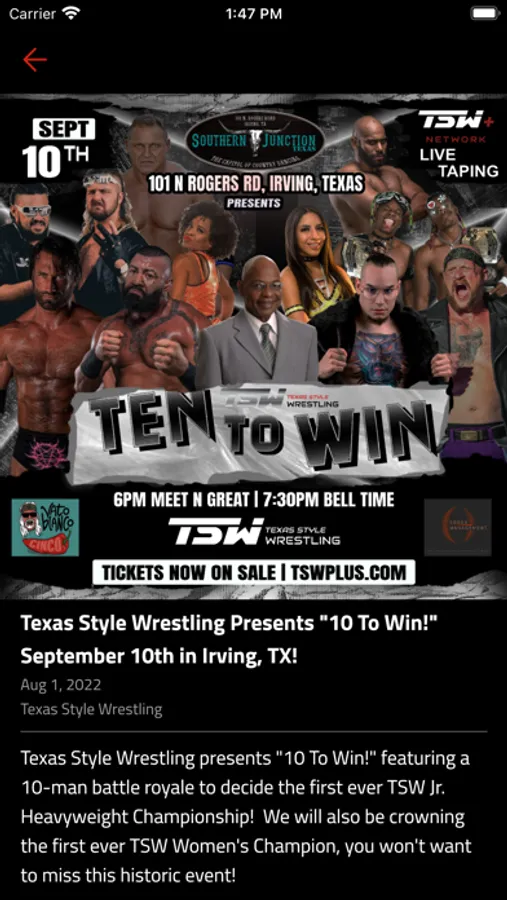 The TSW app is your go to place for all things Texas Style Wrestling!