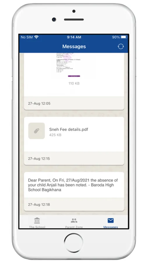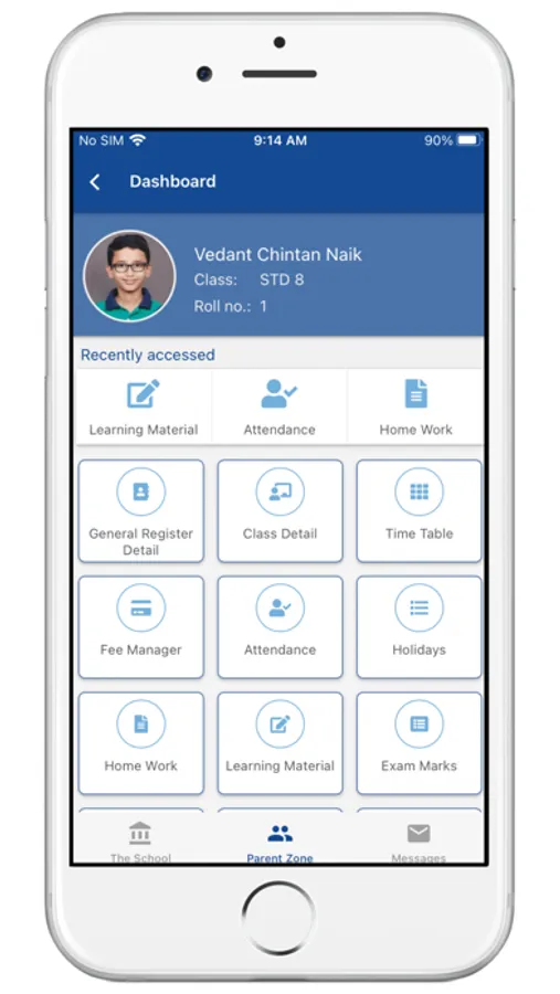 (2) Parent Zone - Parents can see their kid's personal records in this section. For example - General Register details, Time Table, Attendance, Exam Results, Home Work, Fee payments etc. Parents will have to register into the app using the same mobile number which is supplied for school General Register record.