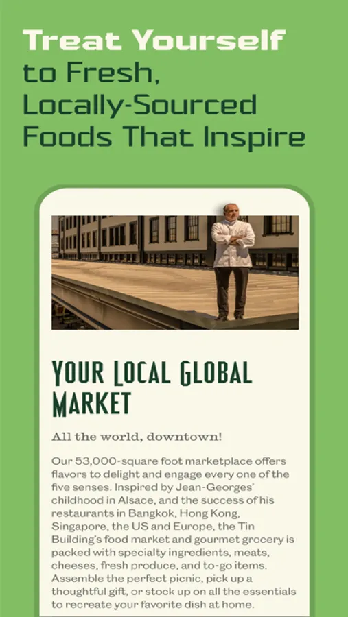 Get food delivery, order take out, and make reservations at the highest quality restaurants in the Seaport District with Tin Building. Get on demand food delivery from 12 Jean-Georges restaurants and grocery delivery from the unique Jean-Georges Private Label. Tin Building is a one stop shop: order food delivery, grocery delivery, store delivery, take out, and make reservations.